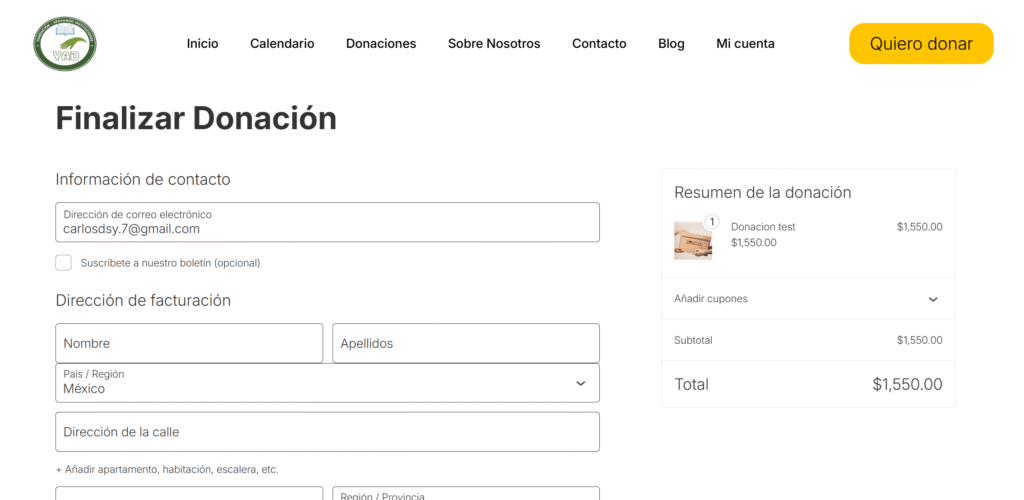 Sitio Web Donación Mexico