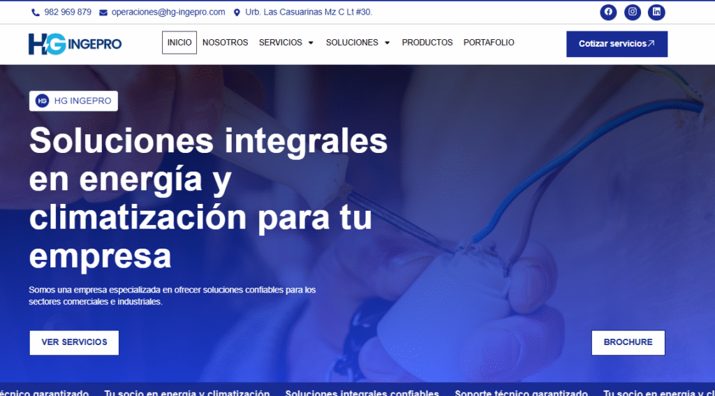Se desarrolló una página web profesional para una empresa dedicada a ofrecer soluciones confiables y personalizadas para los sectores comerciales e industriales. El principal objetivo del proyecto fue fortalecer la presencia digital de la marca, reflejando su compromiso con la calidad, la innovación y la atención al cliente.