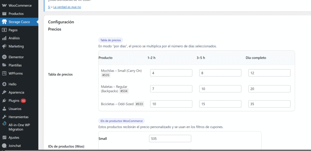 Además se desarrollo un Plugin, hecho a medida para organizar los precios conectado al woocommerce